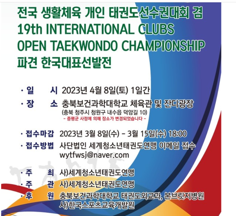 '2023 세계청소년태권도연맹 전국 태권도 대회' 오는 4월 8일 개최 본문