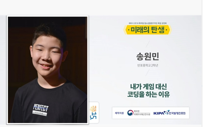 송 원민 반포증학교 2학년 코딩 영재 세바시강연