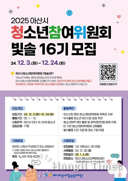 또한, 2025년 아산 청소년 참여 위원회 16기 모집도 진행되고 있어요.